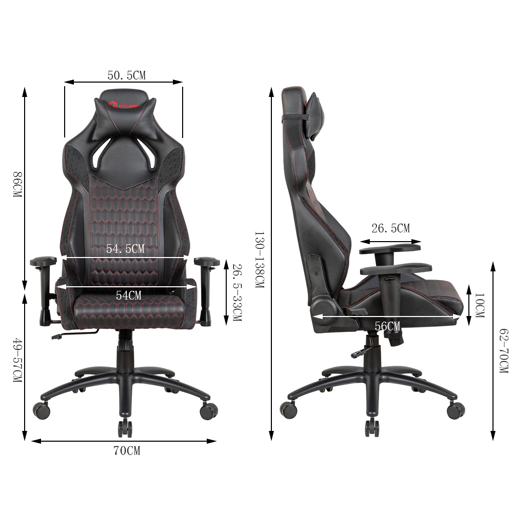 Krzesło do gier RX-2090 z metalową ramą i wysokim oparciem, wykonane ze skóry PCV, wykorzystuje metalową ramę o wysokiej wytrzymałości. Metal ten został poddany specjalnemu procesowi obróbki cieplnej i charakteryzuje się doskonałą wytrzymałością i wytrzymałością. Nawet przy częstym użytkowaniu rama krzesła może zachować doskonałą stabilność bez deformacji i poluzowań. Niezależnie od tego, czy gracz wstaje i podekscytowany kibicuje podczas gry, czy też często zmienia pozycję siedzącą w codziennym użytkowaniu, rama krzesła jest w stanie wytrzymać różne naciski i zapewnić graczowi solidne wsparcie.